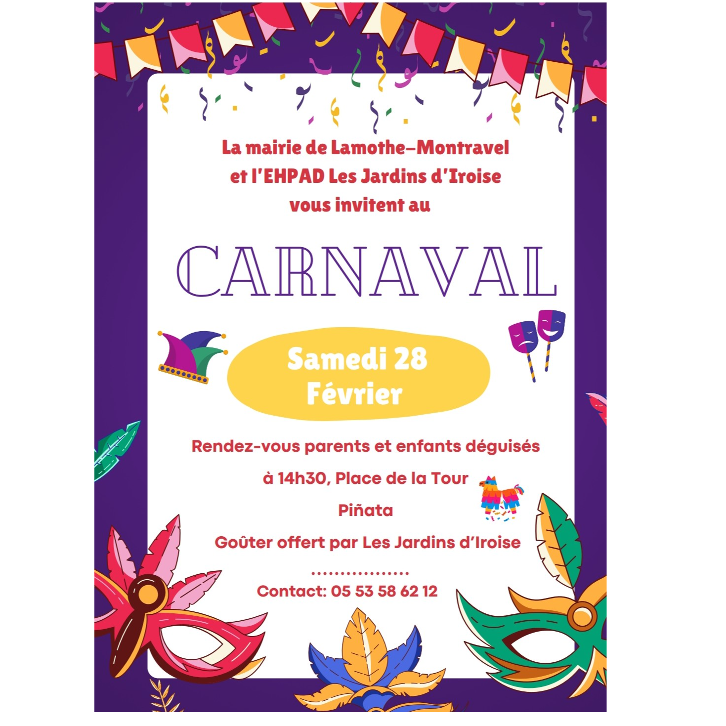 Les petits et grands enfants sont conviés à assister au carnaval samedi 28 février à 14h30.